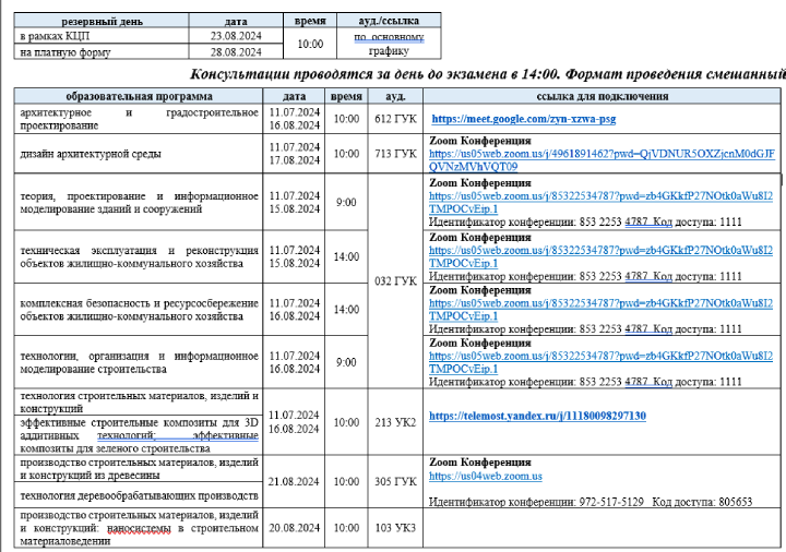 Ссылки для подключения сдачи вступительных экзаменов в онлайн режиме: